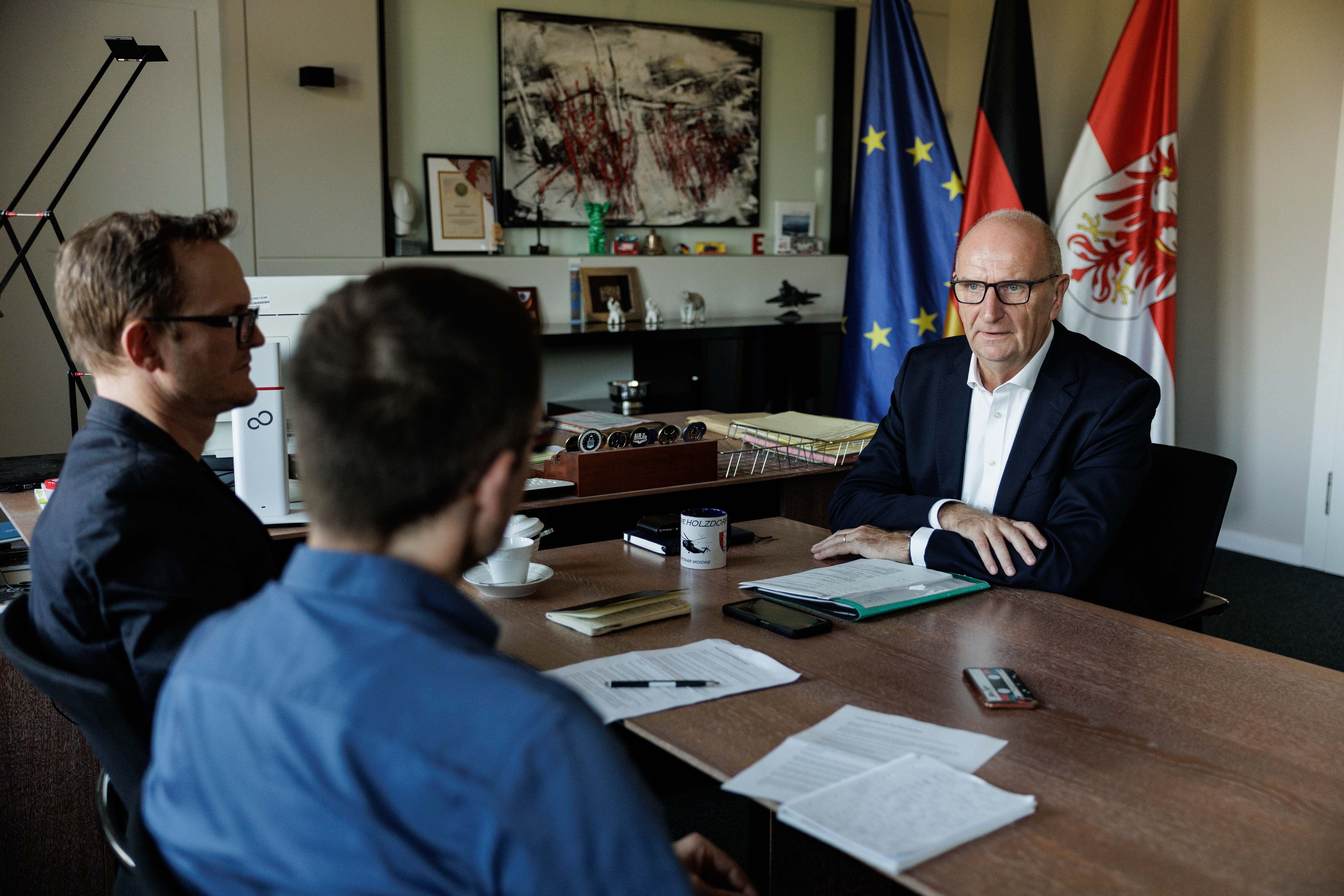 Brandenburgs Ministerpräsident Dietmar Woidke beim Gespräch mit dem „vorwärts" in der Staatskanzlei in Potsdam.